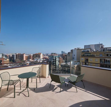 Additional services include car rental and a 24-hour front desk. The hotel is located near Torre Agbar and offers direct metro and train connections to the city center and airport.