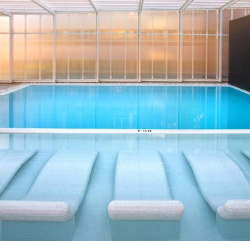 The hotel features an outdoor swimming pool set on a chic sun terrace with loungers, as well as an optional spa area (extra charge) including an indoor pool, sauna, and Turkish bath. A fully equipped fitness center is also available for guests.